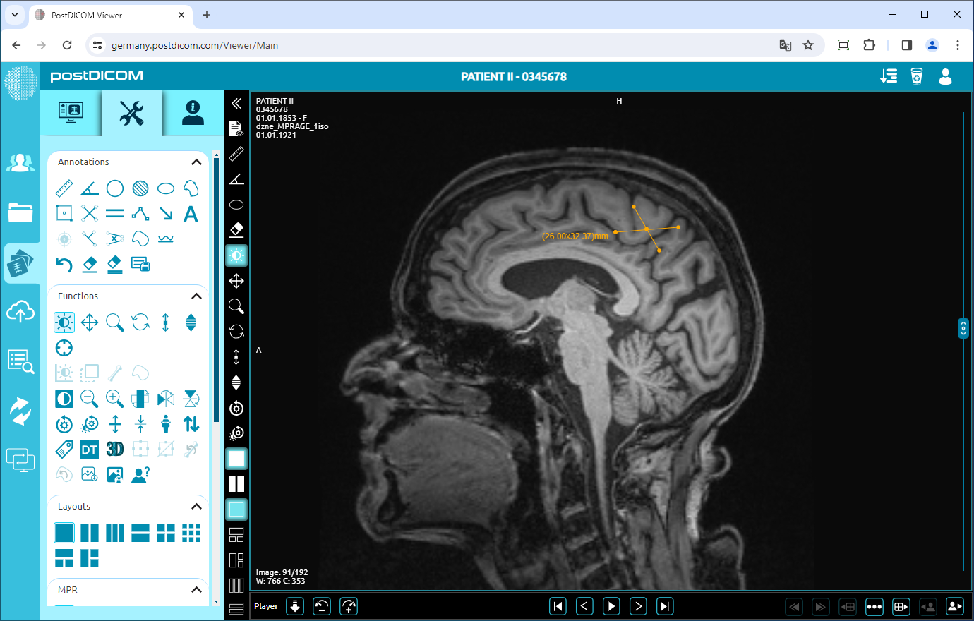 On the “Patient Search” page, all patient orders in your account will be shown. Double-click on the order you want to view the images. The “View” page will be opened. Click on the “Tools” icon on the upper left side of the page.
